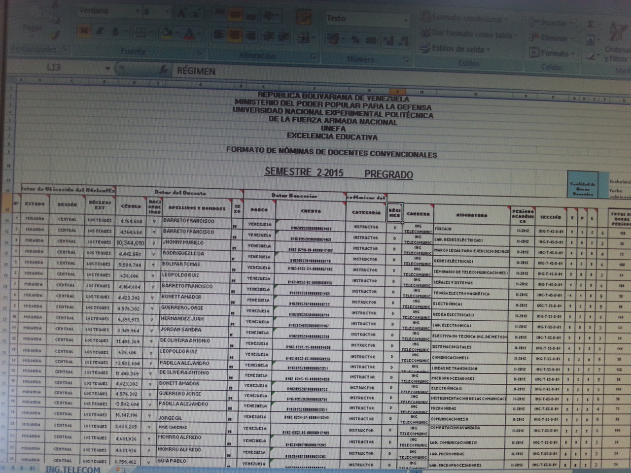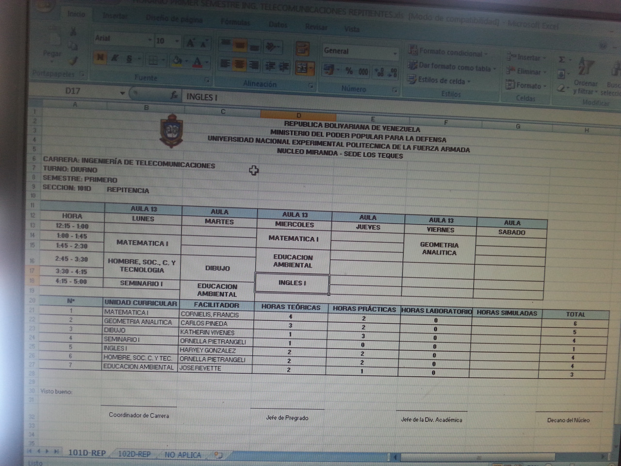 SOA, NOMINA Y HORARIO DE INGENERÍA EN TELECOMUNICACIONES